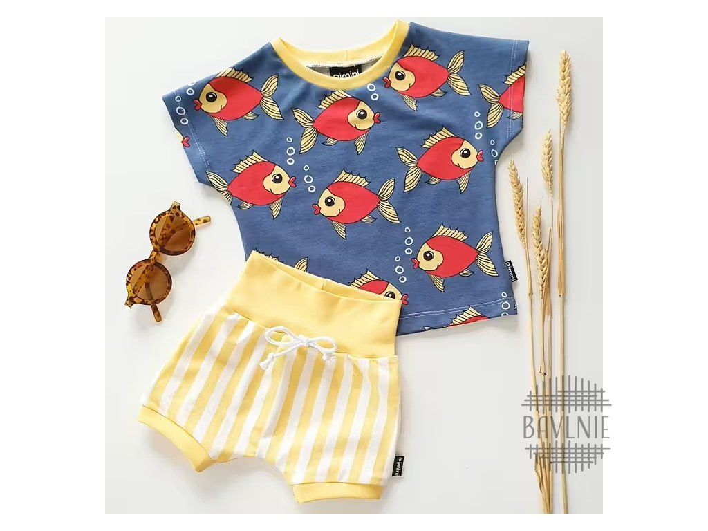 BIO úplet Rybky na džínově modré