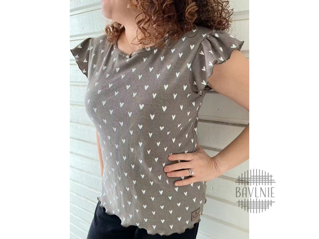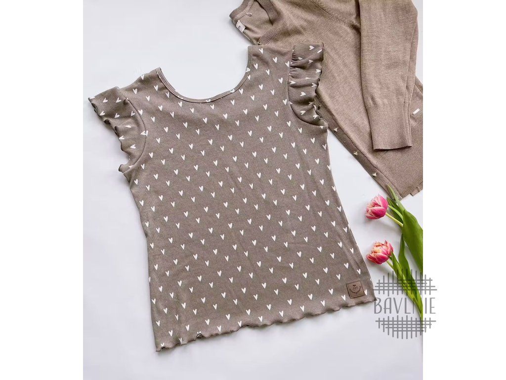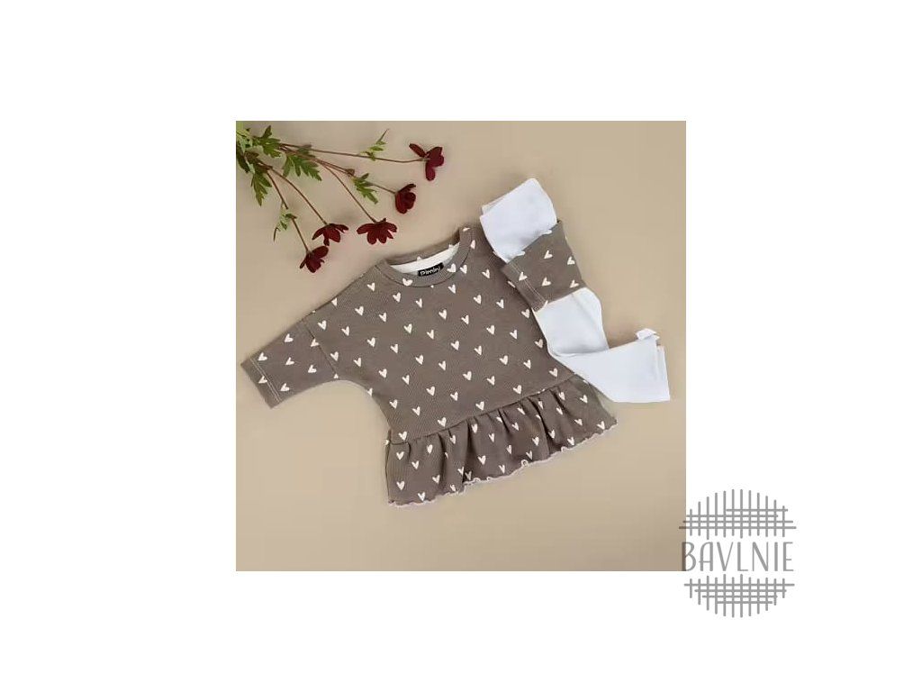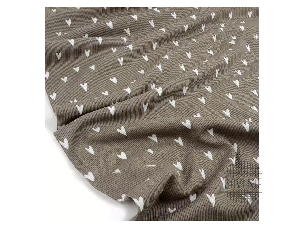 BIO žebrovaný úplet Srdíčka na taupe