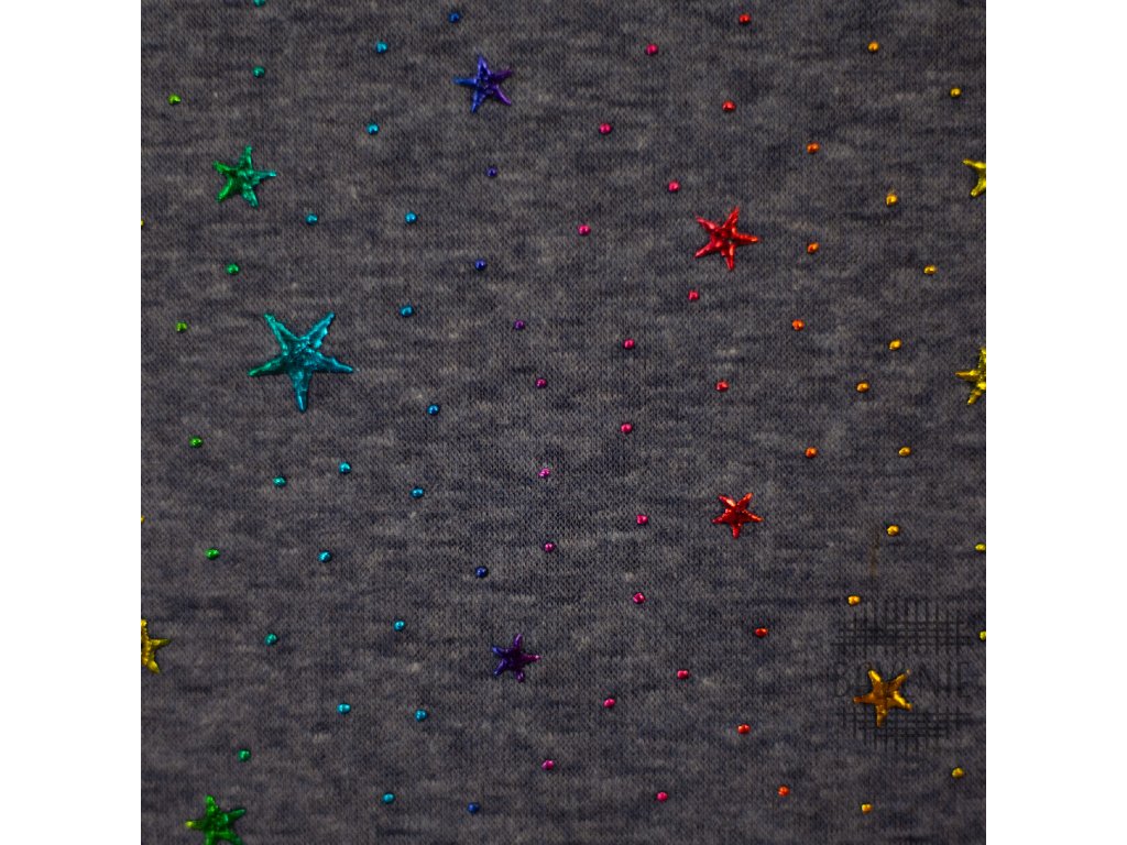 Alpenfleece 3D hvězdičky na tmavě modrém melíru