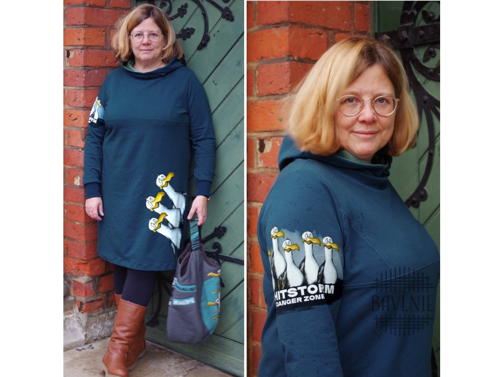 Použití: teplejší trika, lehčí kombinézy, tepláky, mikiny, sukně, šaty, čepice