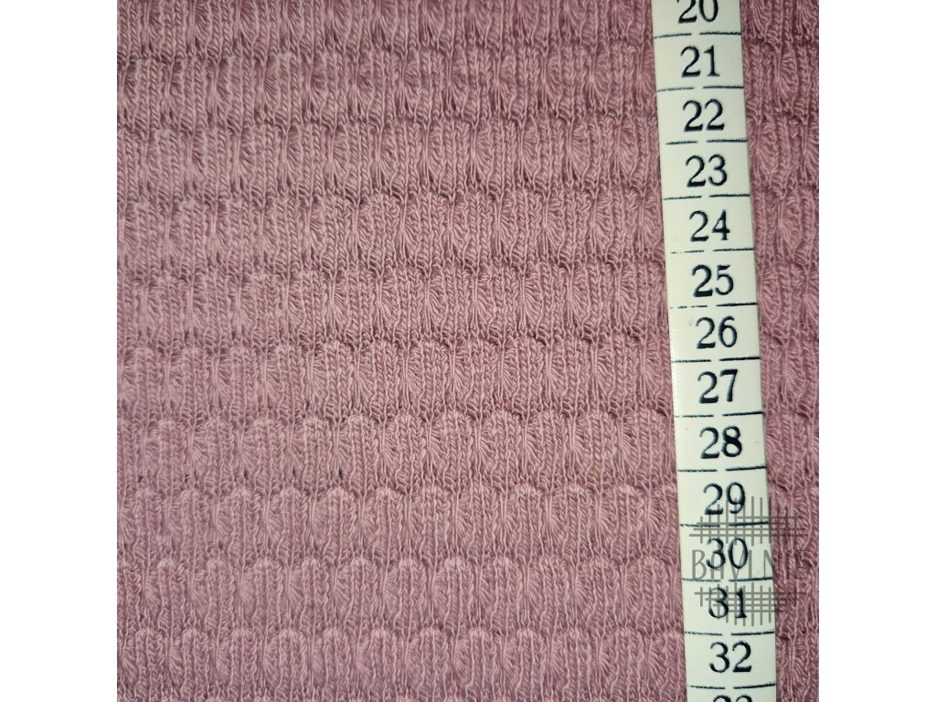 Letní svetrovina z organické bavlny je vhodná pro lehké a vzdušné letní oblečení. Speciální technika pletení vytváří v látce jemné vzory a dodává jí mírnou pružnost. Díky tomu z ní lze snadno šít krásné kousky pomocí overlockového stoje nebo s vhodným nastavením stahu, běžného šicího stoje.