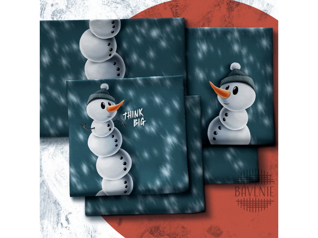 Počesaná teplákovina panel Sněhulák 90 cm