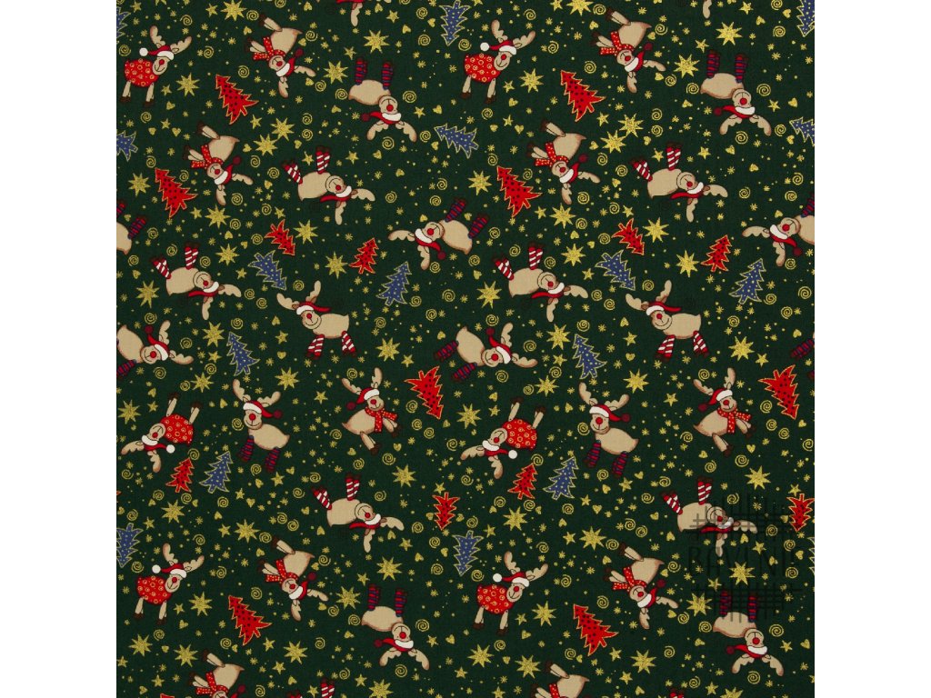 Plátno Vánoční sobi a stromky na tmavě zelené