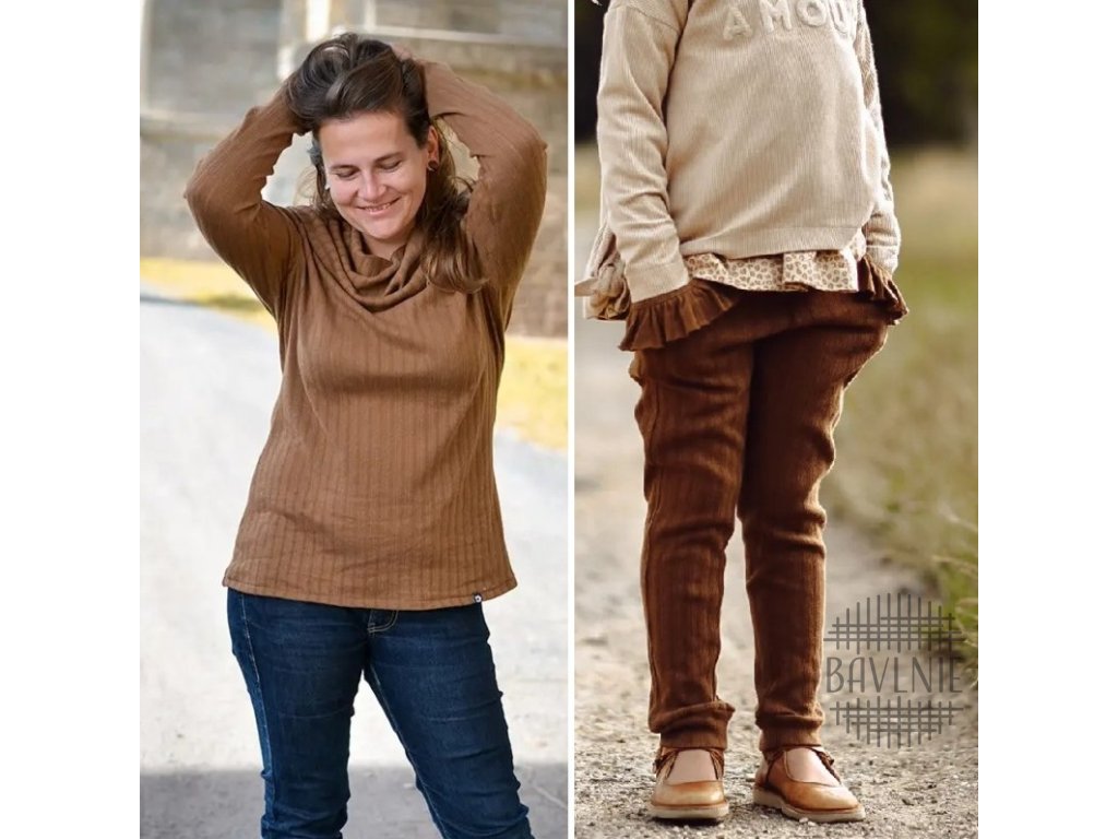- Legíny, kalhoty, dětské oblečení - díky své elasticitě a komfortu je žebrovaný úplet ideální pro každodenní nošení.