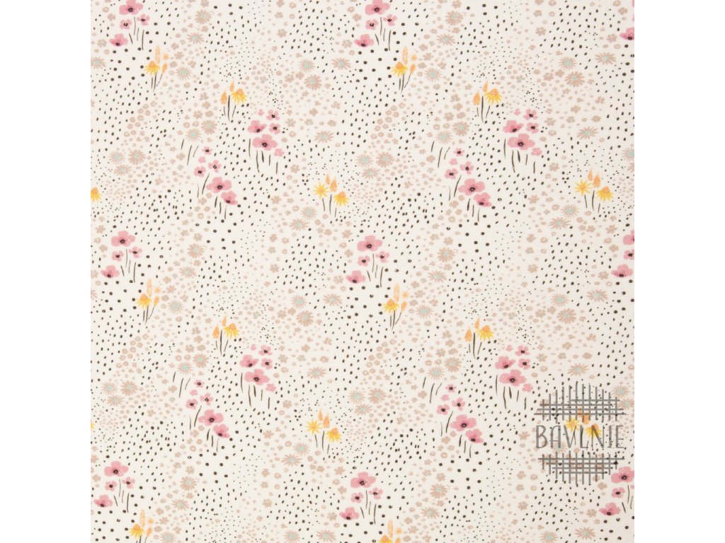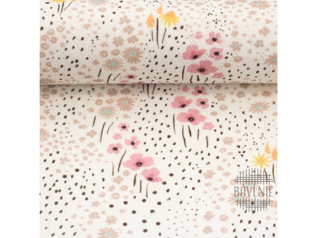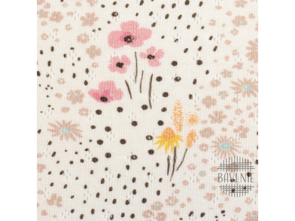 Jemný bavlněný úplet s drobným děrovaným vzorem (většinou ve formě kytiček, lístečků nebo puntíků).